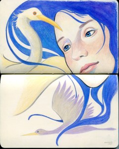Prismacolor pencil and ink drawing in my Moleskine sketchbook. December 2011