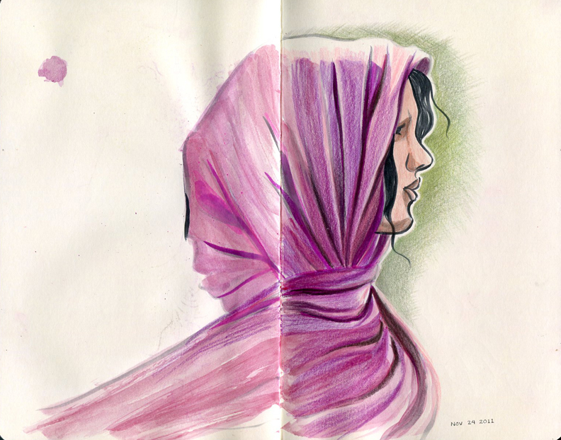 Prismacolor pencil and ink drawing in my Moleskine sketchbook. November 2011