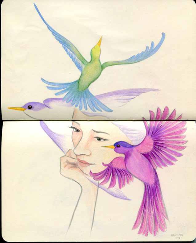 Ink and Prismacolor pencils in my Moleskine sketchbook.